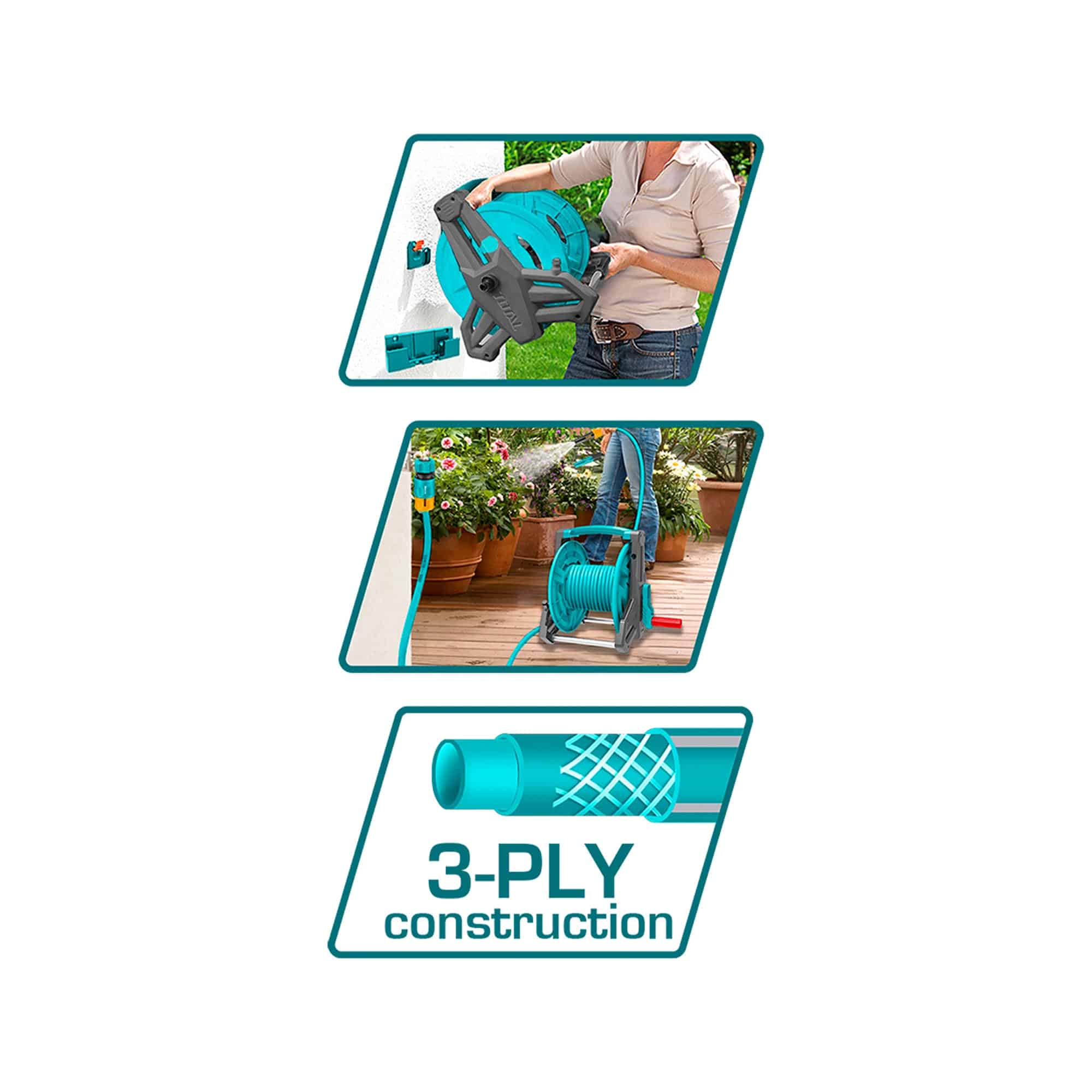 Juego de Carrete para Manguera de Riego PVC 1/2″ 20 m Total