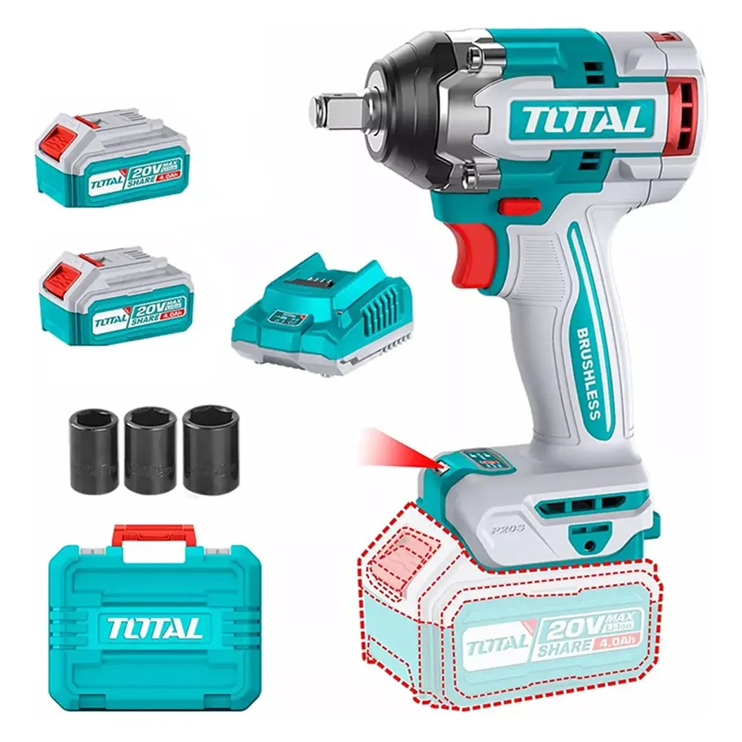 Llave de Impacto inalámbrica 1/2″ 20V 500nm Total