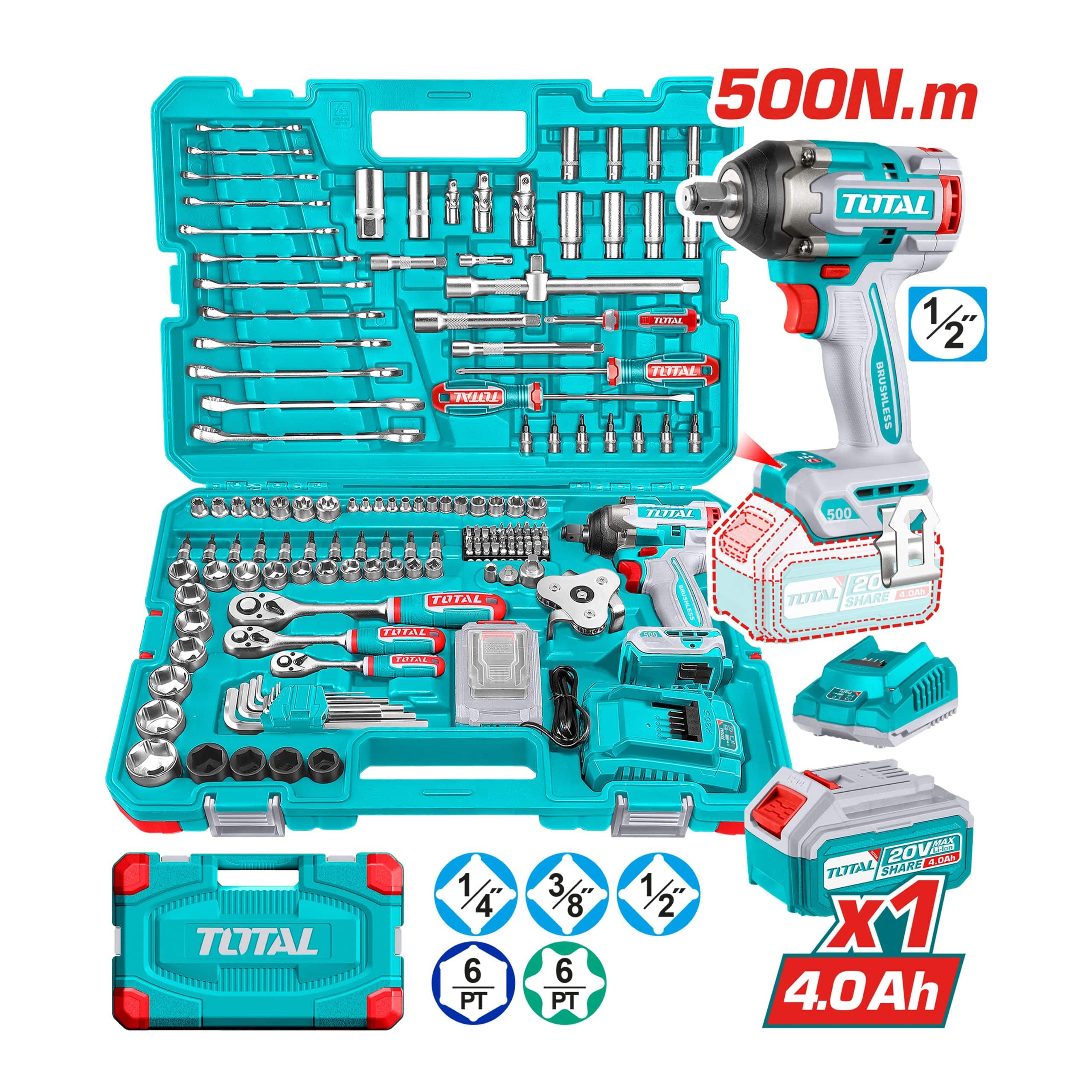 Set De 152 Piezas Total: Llave De Impacto Inalámbrica 20v 1/2″ 500Nm + Dados + Llaves + Puntas