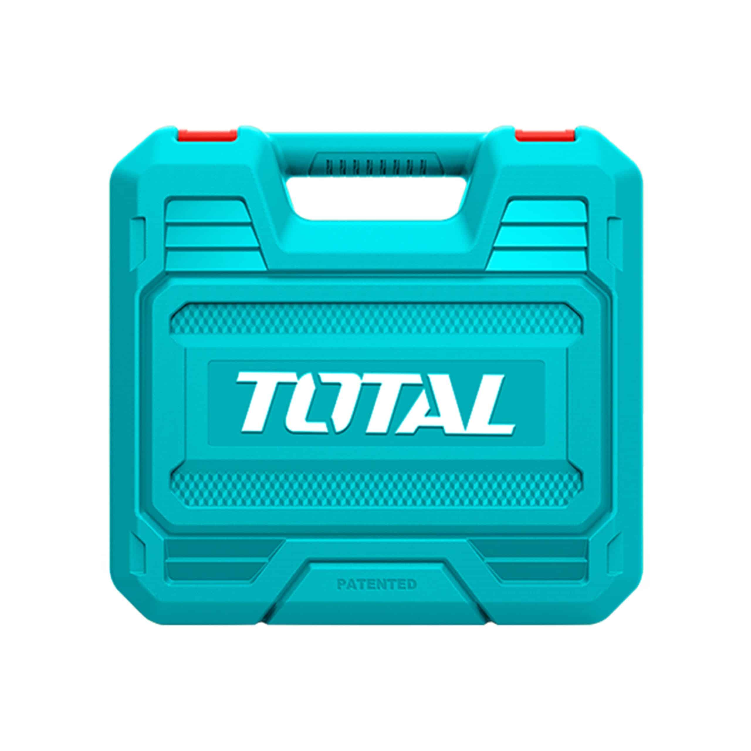 Taladro atornillador Total 20V, velocidad 0-1900 rpm, velocidad impacto 22500/min, par 55Nm, mandril 2.0-13mm, engranaje 2 velocidades, 2 baterías 2.0Ah, cargador rápido, luz, indicador LED y 50 acces